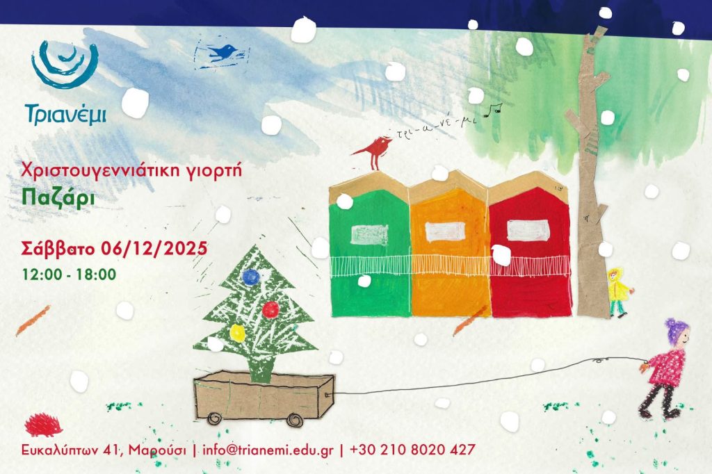 Χριστουγεννιάτικο bazaar στο σχολείο Τριανέμι. Εκείνη την ημέρα το φυσικό μας κατάστημα μετακομίζει Ευκαλύπτων 41 Μαρούσι και θα είμαστε με έναν πάγκο γεμάτο με Waldorf υλικά, παιχνδίδια και βιβλία . Ελάτε να ακούσουμε ποιοτική μουσική, σπιτικά φαγητά και ροφήματα και να γνωρίσουμε από κοντά τη φιλοσοφία της κοινότητας.