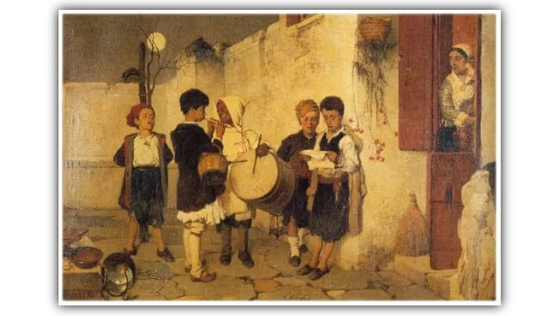 Εικαστικό εργαστήρι για παιδιά 6-10 ετών. Ζωγραφίζουμε με έμπευση τον γνωστό πίνακα “Κάλαντα” του Νικηφόρου Λύτρα.